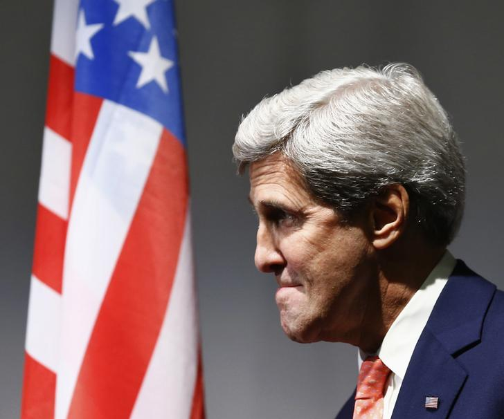 U.S. Secretary of State John Kerry leaves after a news conference following nuclear talks in Geneva, November 10, 2013. REUTERS/Denis Balibouse