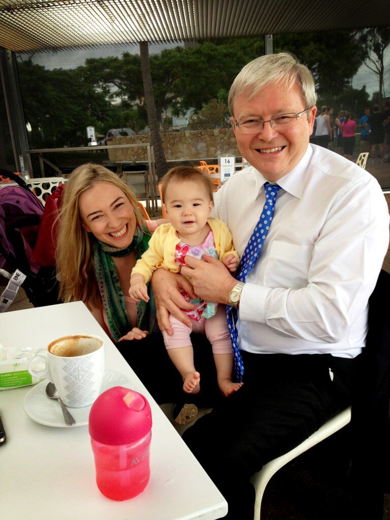 Jessica Tse (Nee Rudd). Josephine Tse, The Hon. Kevin Rudd MP. (Left to Right) Photo courtesy of @Jess_Rudd