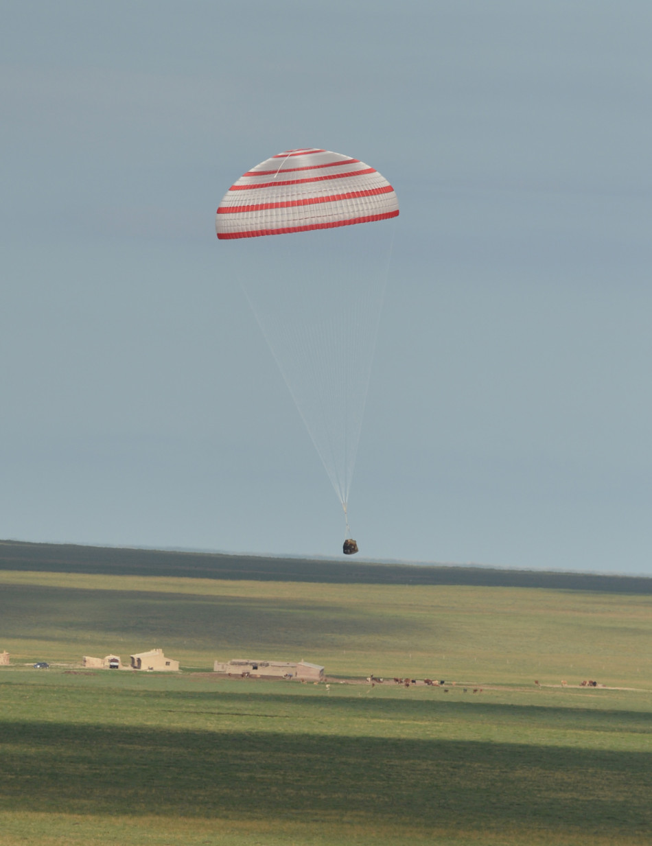 In this photo released by China's Xinhua News Agency, the re-entry capsule of China's Shenzhou 10 spacecraft lands in Siziwang Banner, north China's Inner Mongolia Autonomous Region on Wednesday, June 26, 2013. The space capsule with three astronauts has safely landed on grasslands in northern China after a 15-day trip to the country's prototype space station. (AP Photo/Xinhua,Ren Junchuan) NO SALES