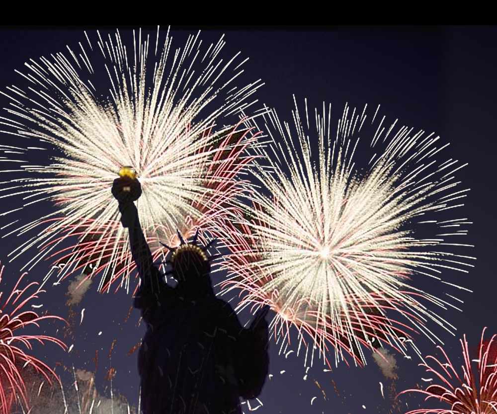 Fireworks over the Statue of Liberty, photo credit: Zingerbug