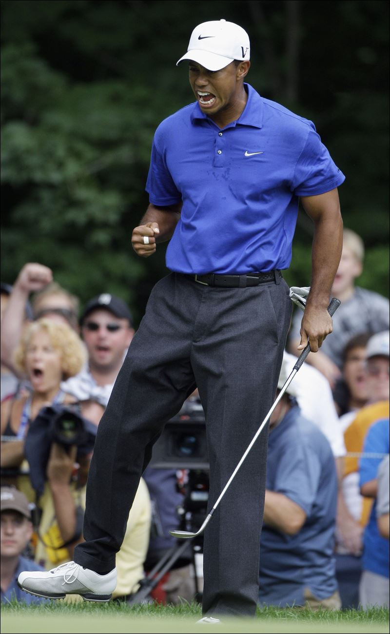 Tiger Woods had few chances to celebrate yesterday, but he was able to deliver his signature fist pump after a birdie putt on the 14th hole.