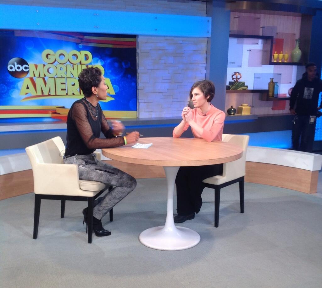 Photo: Amanda Knox speaks to Robin Roberts off-camera after her interview on 'Good Morning America' - @GMA - breakingnews.com http://www.breakingnews.com/item/2014/01/31/photo-amanda-knox-speaks-to-robin-roberts-off-cam/