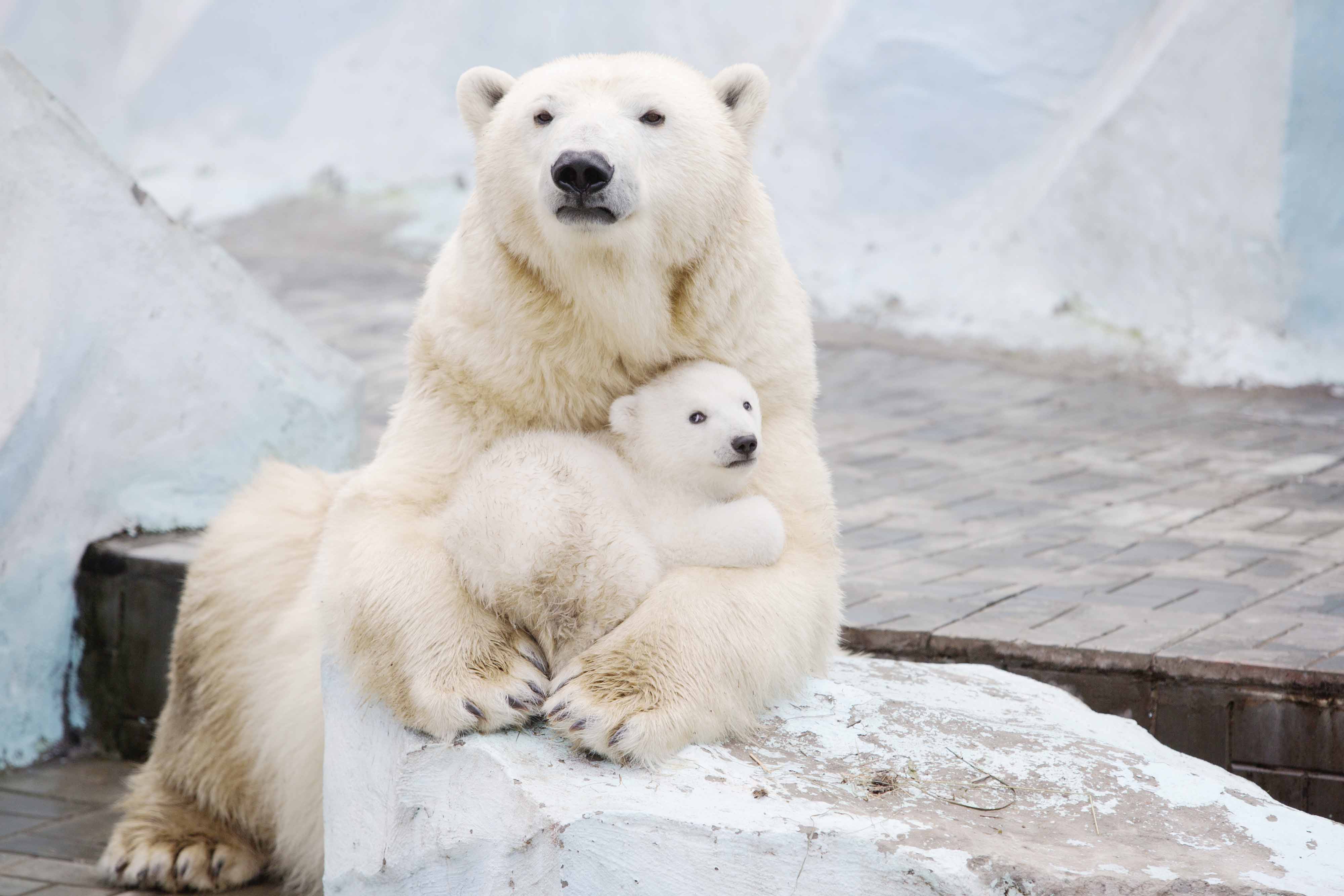 A perfect love: Polar bear Gerda, six, cuddles up with her cub at Novosibirsk Zoo in Russia