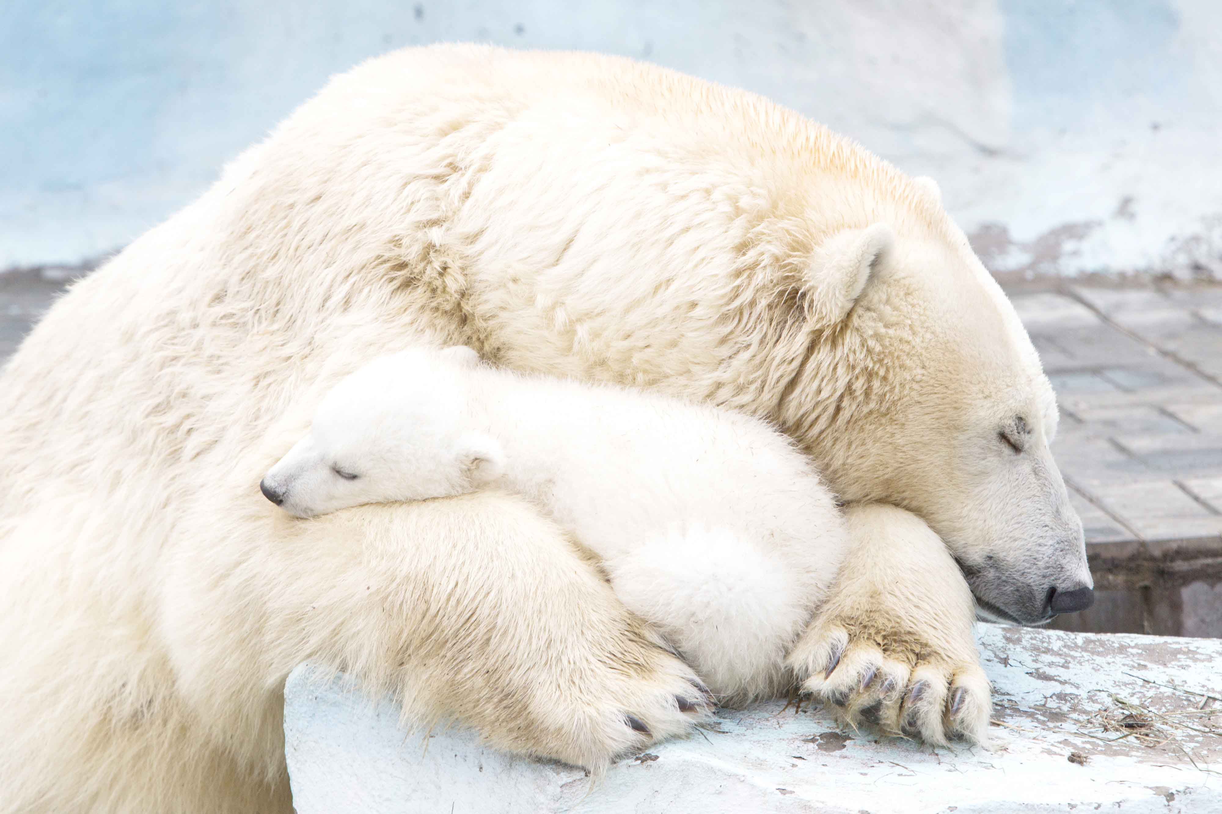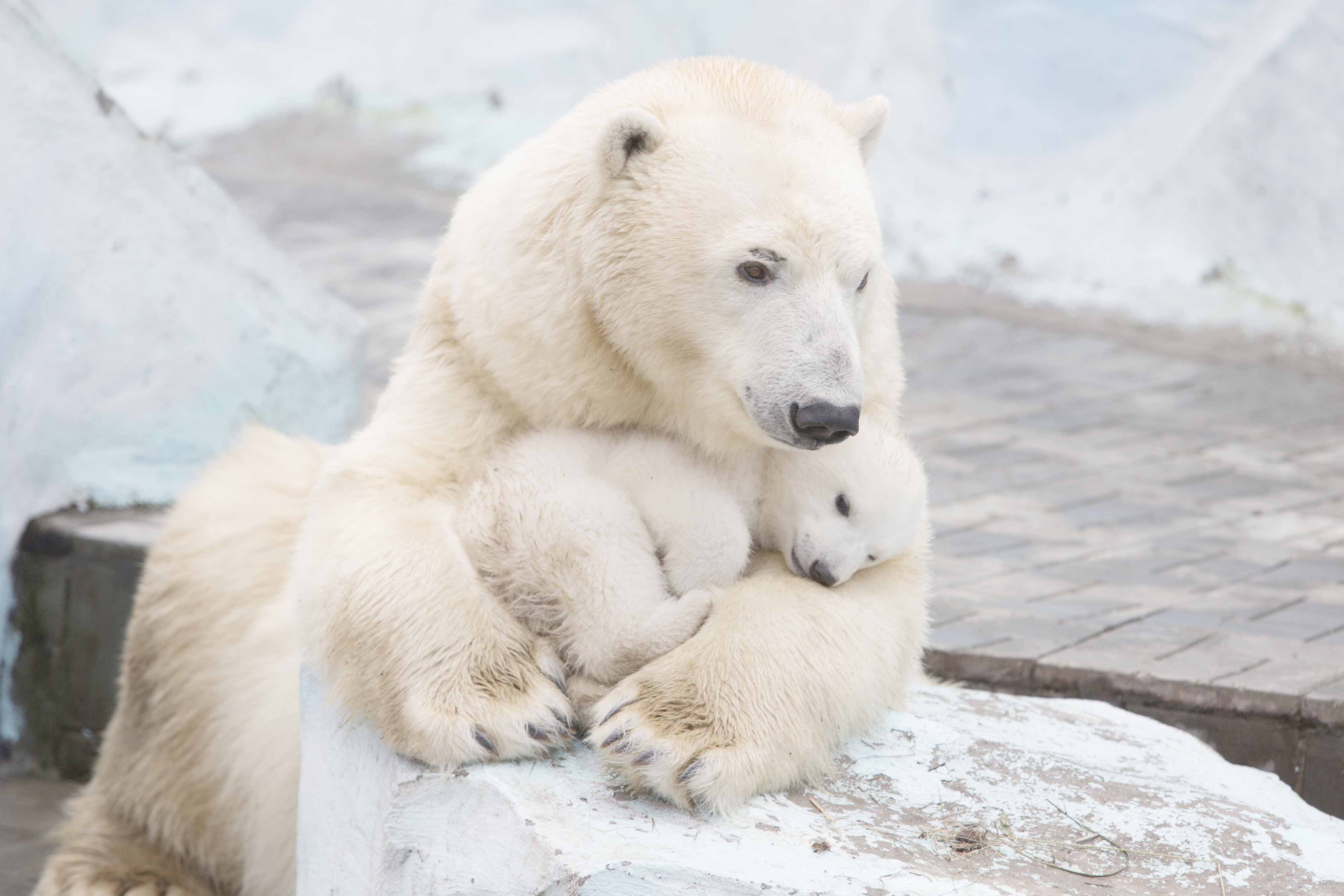 Read more: http://www.dailymail.co.uk/news/article-2609625/Heartwarming-love-freezing-cold-A-polar-bear-mother-cuddles-cub.html#ixzz2zeSTdld2
