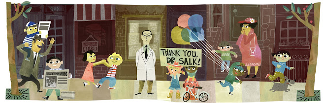 Google Doodle, 沙克疫苗發明人、美國實驗醫學家、病毒學家 Jonas Salk 100 歲誕辰