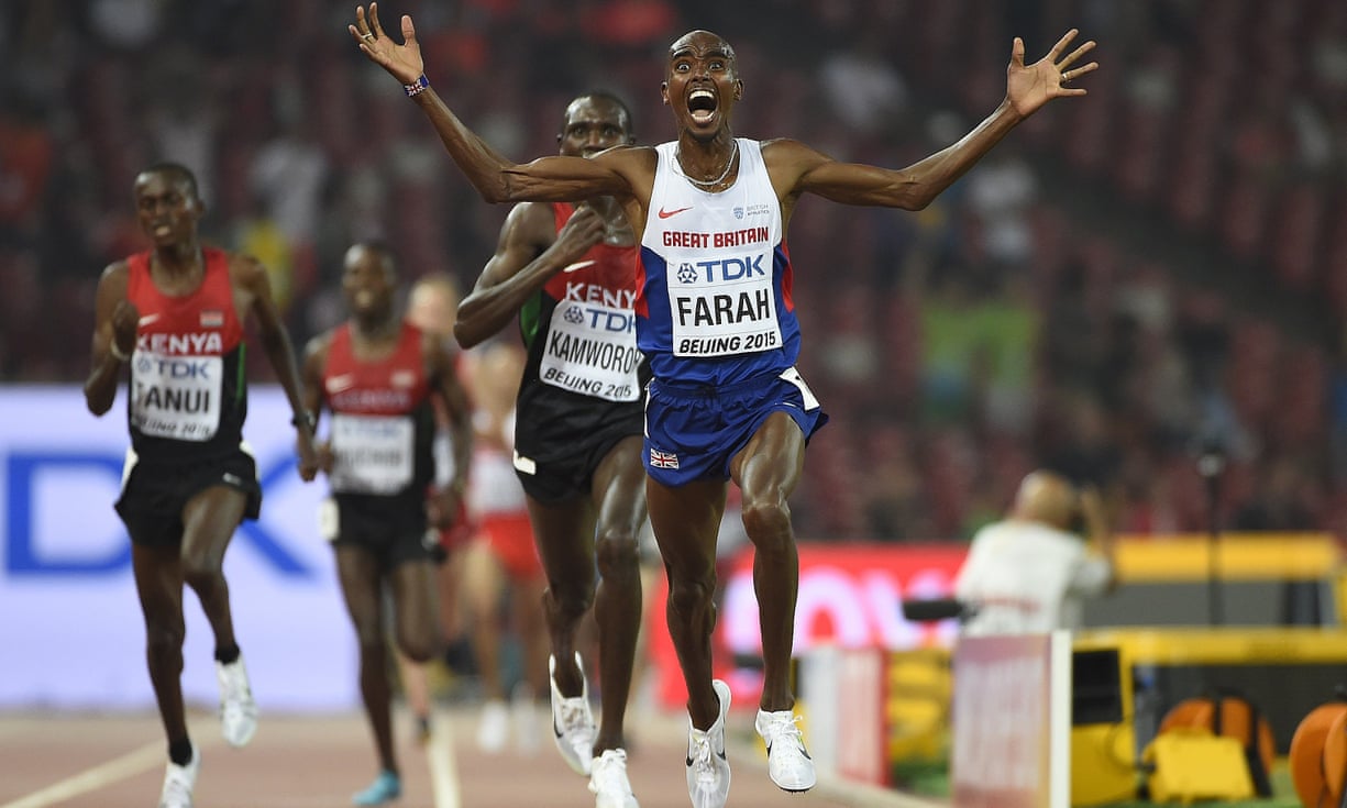Mo Farah stops for a drink, wins 5,000m at World Championships anyway