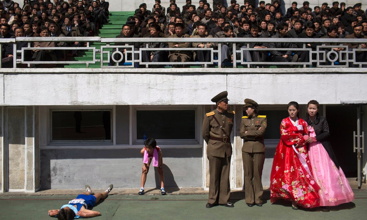 Inside the Kim Il-sung stadium in Pyongyang as North Korea hosts the annual Mangyongdae prize marathon to mark the birthday of the late leader. Photograph: David Guttenfelder/AP