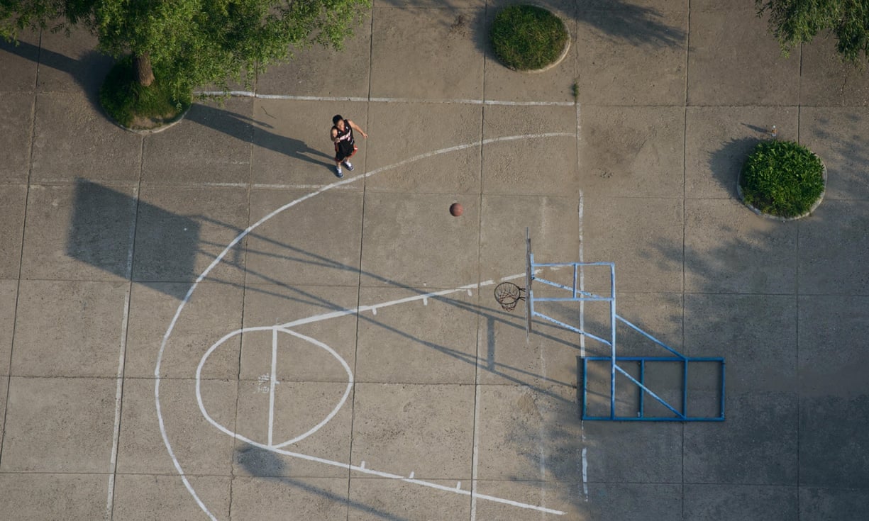 A man shoots for a basket on a basketball court in the capital. Photograph: Ed Jones/AFP/Getty Images