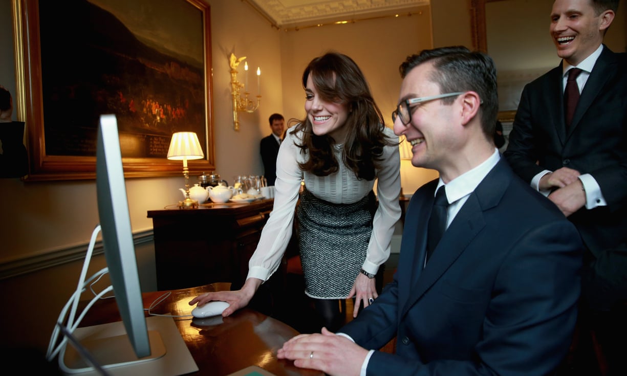 Catherine, Duchess of Cambridge, launches a story on ‘Early Intervention in Mental Health Care’ watched by editors from the Huffington Post at Kensington Palace. The Duchess of Cambridge is guest editing the Huffington Post UK today