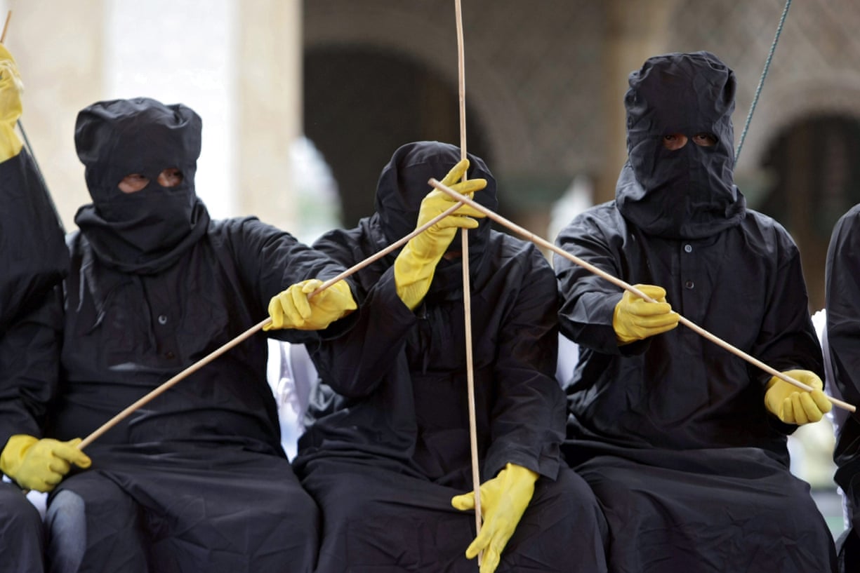 Punishers, locally known as algojo, wait to publicly whip offenders