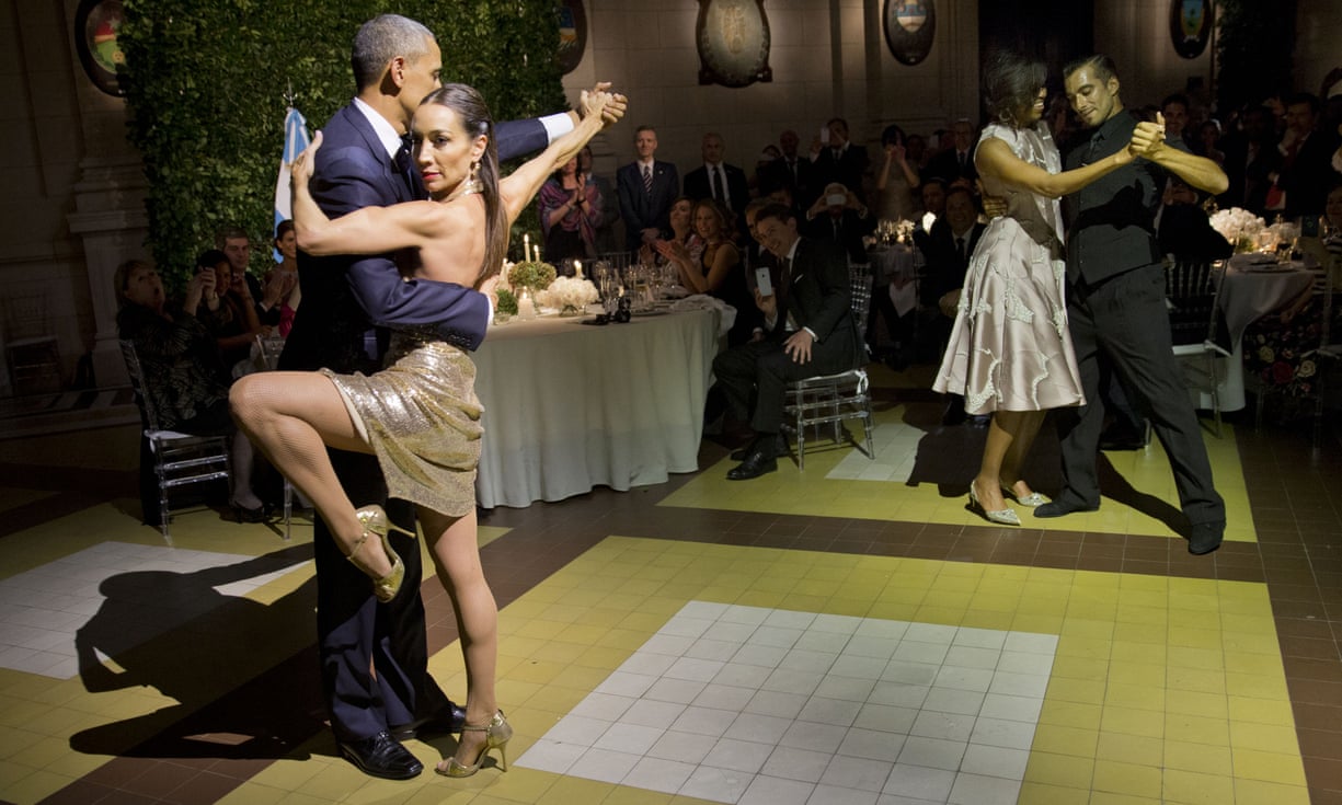 President Barack Obama and first lady Michelle Obama dance the tango during the state dinner at the Centro Cultural Kirchner