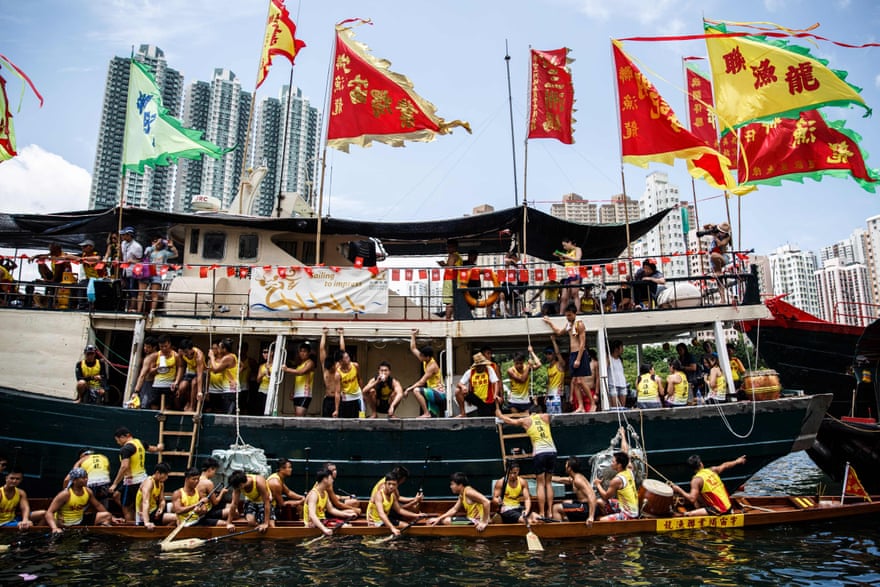 Participants compete during a race to mark Tung Ng or Dragon Boat Festival at Aberdeen fishing port in Hong Kong