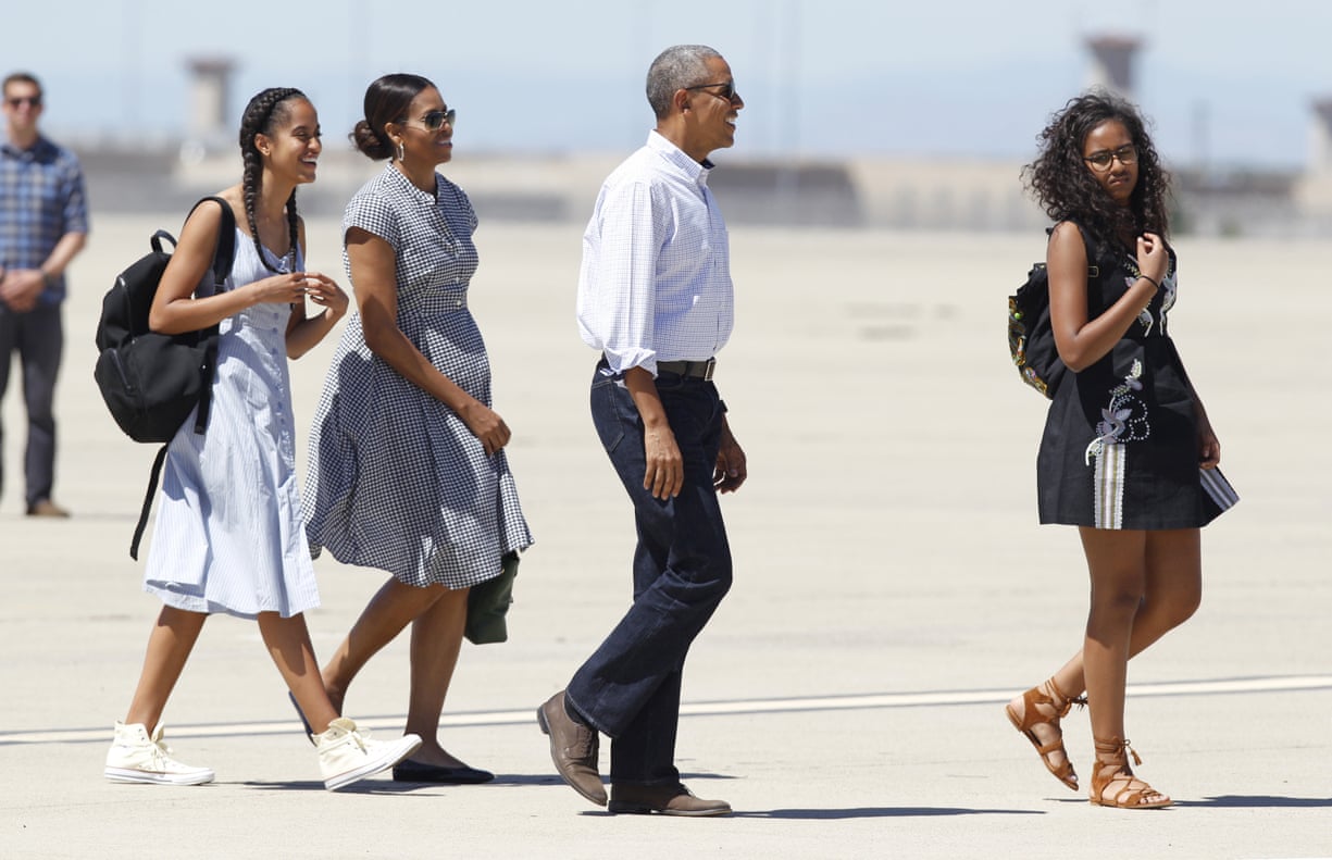 President Barack Obama and family – from left to right: Malia, Michelle and Sasha – head towards Air Force One after visiting Yosemite national park