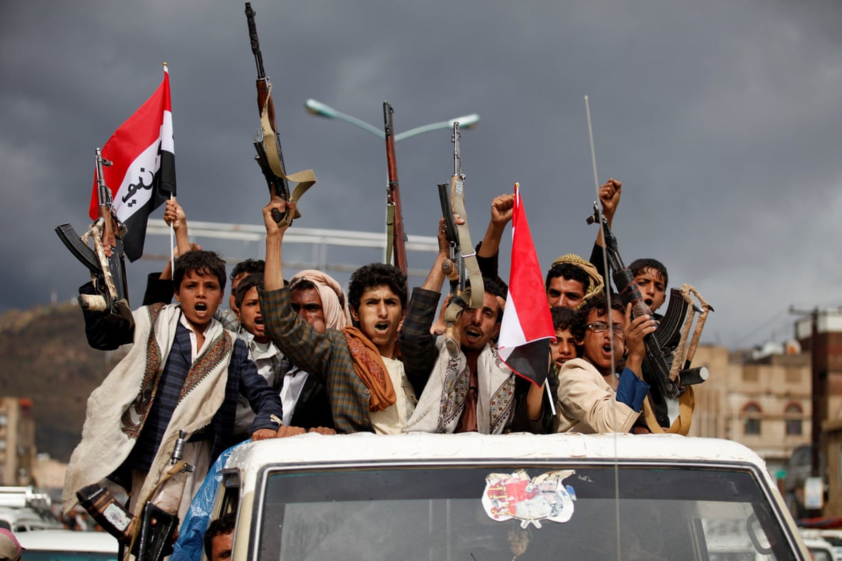 Armed men ride to attend a rally held by supporters of Houthi rebels and Yemen’s former president Ali Abdullah Saleh