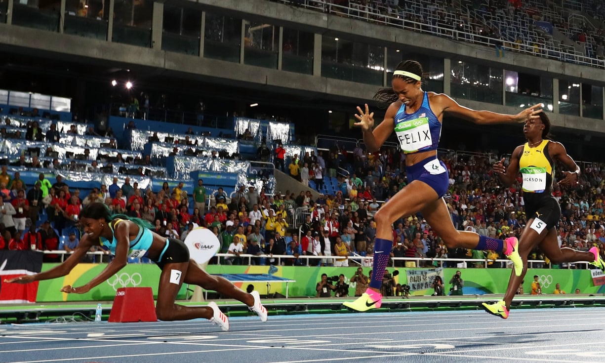 Bahamas' Shaunae Miller DIVES over the finish line of the 400m to deny Allyson Felix gold | Daily Mail Online
