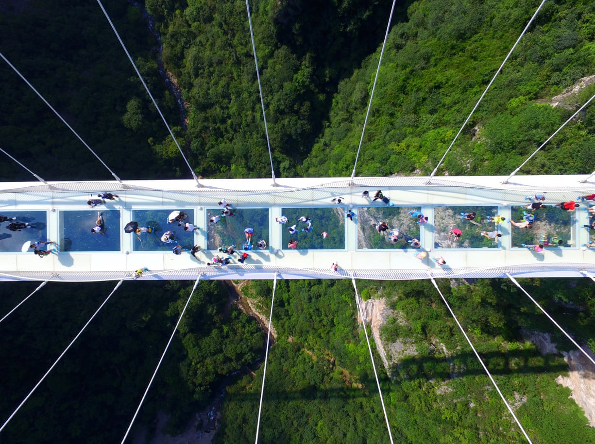 Tourists visit the world’s highest and longest glass-bottomed bridge over Zhangjiajie Grand Canyon in Hunan province