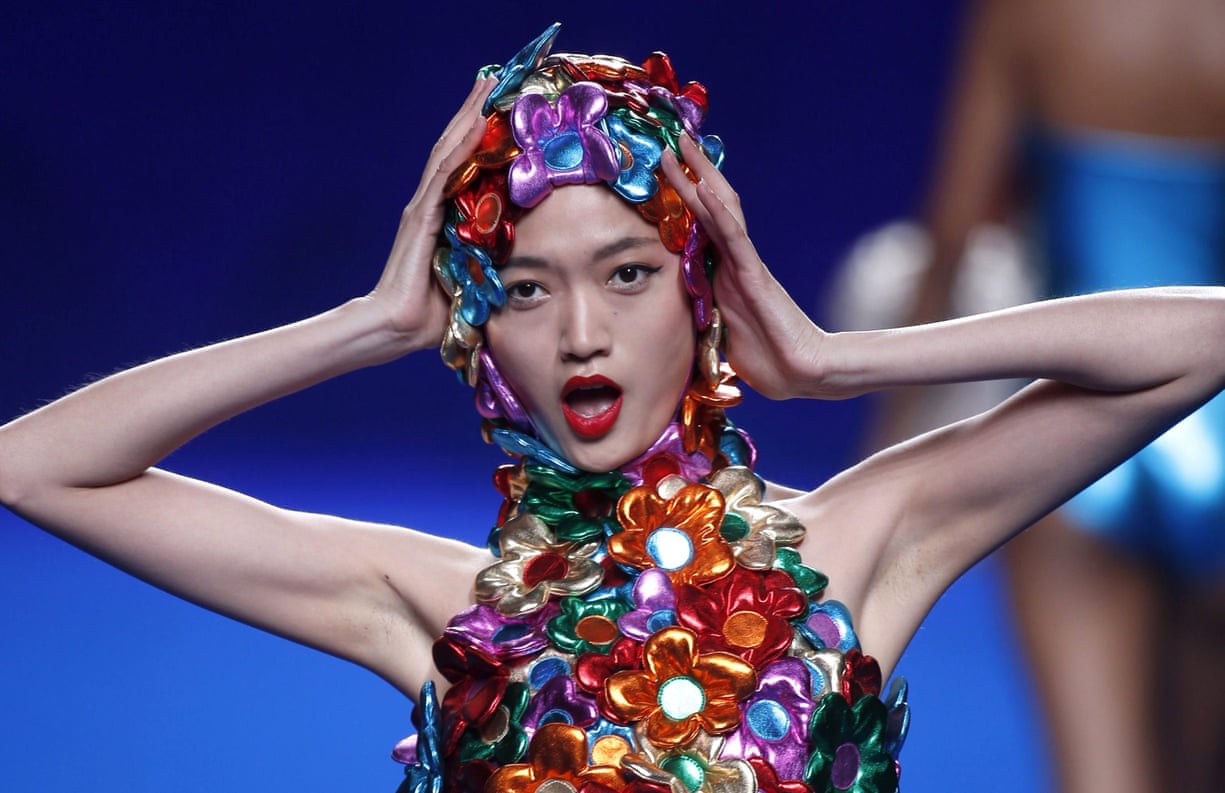 A model presents a creation by designer Agatha Ruiz de la Prada during fashion week