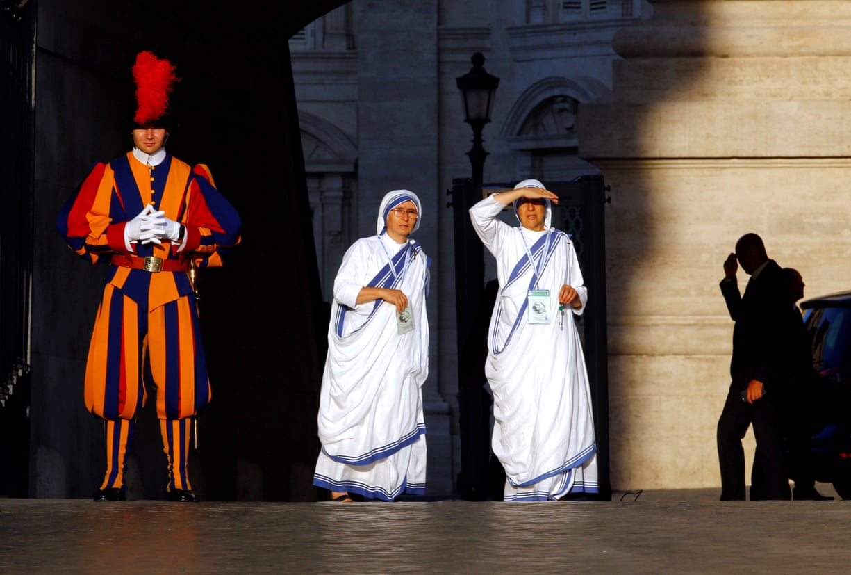 Nuns belonging to the Missionaries of Charity arrive for the canonisation mass