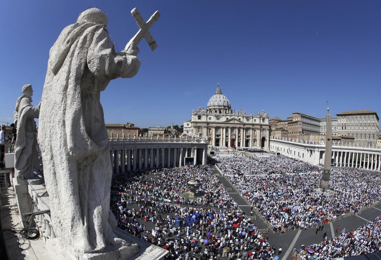 Crowds gather in St Peter’s Square for a canonisation mass for Mother Teresa performed by Pope Francis