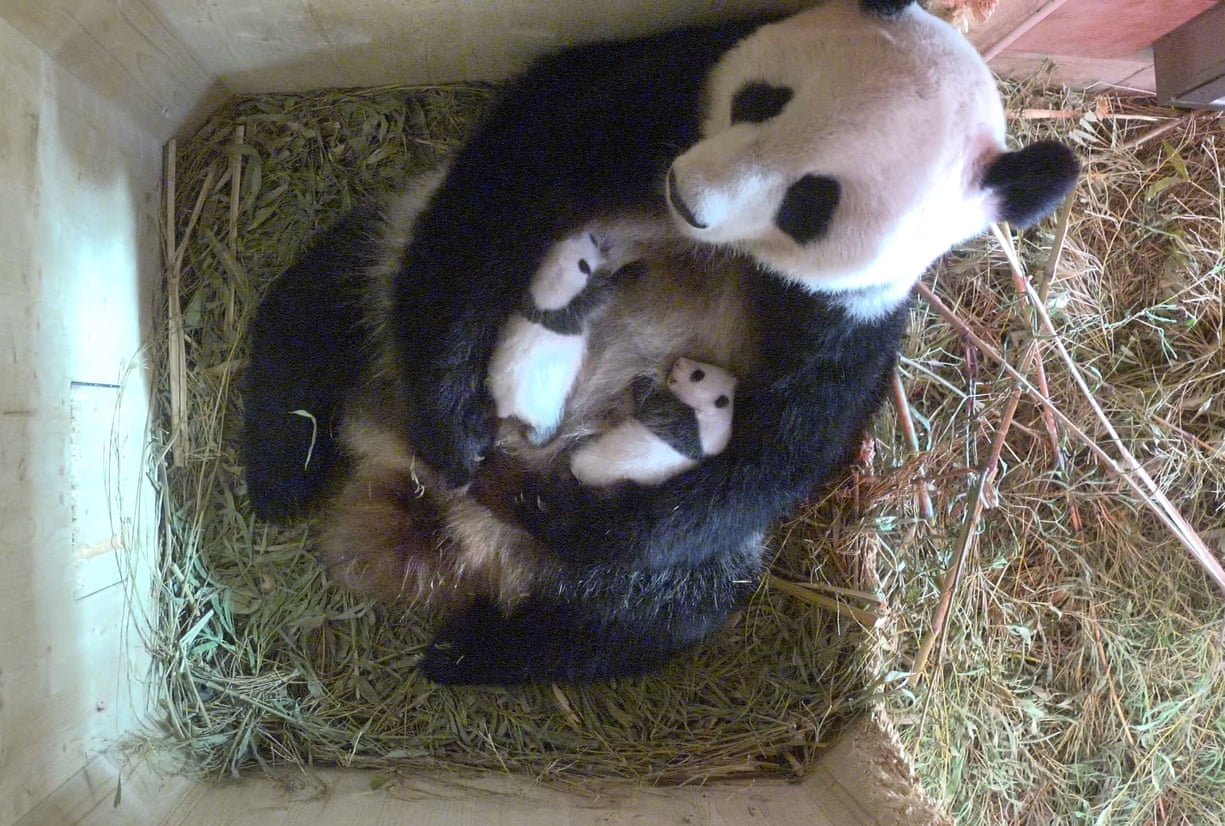 Yang Yang the panda holds her twins, born at the Tiergarten Schönbrunn zoo a month ago