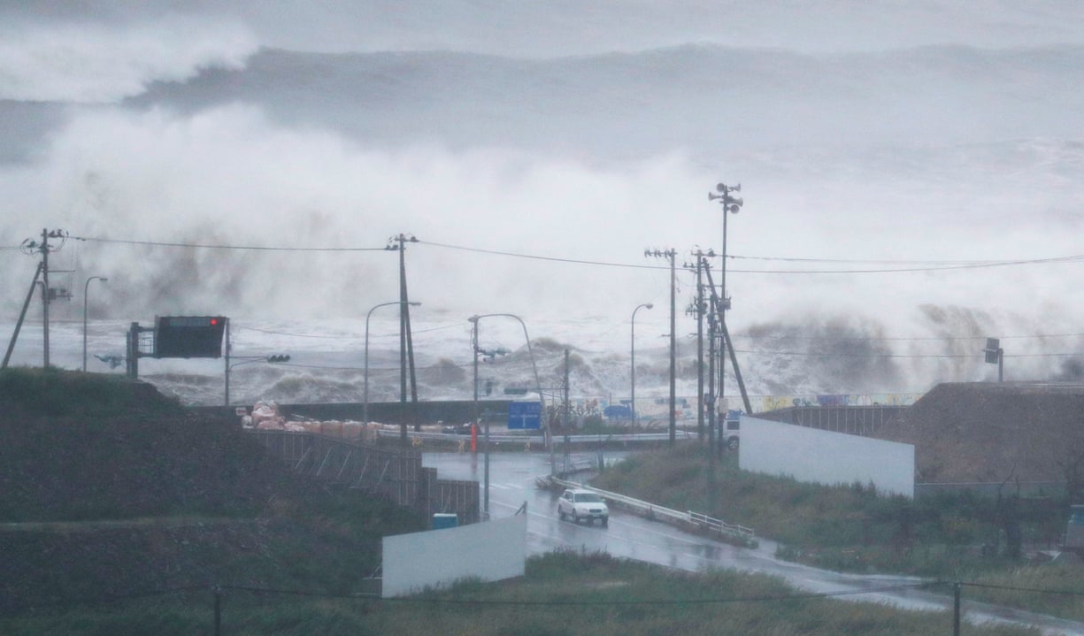 High waves triggered by typhoon Lionrock batter the coastline