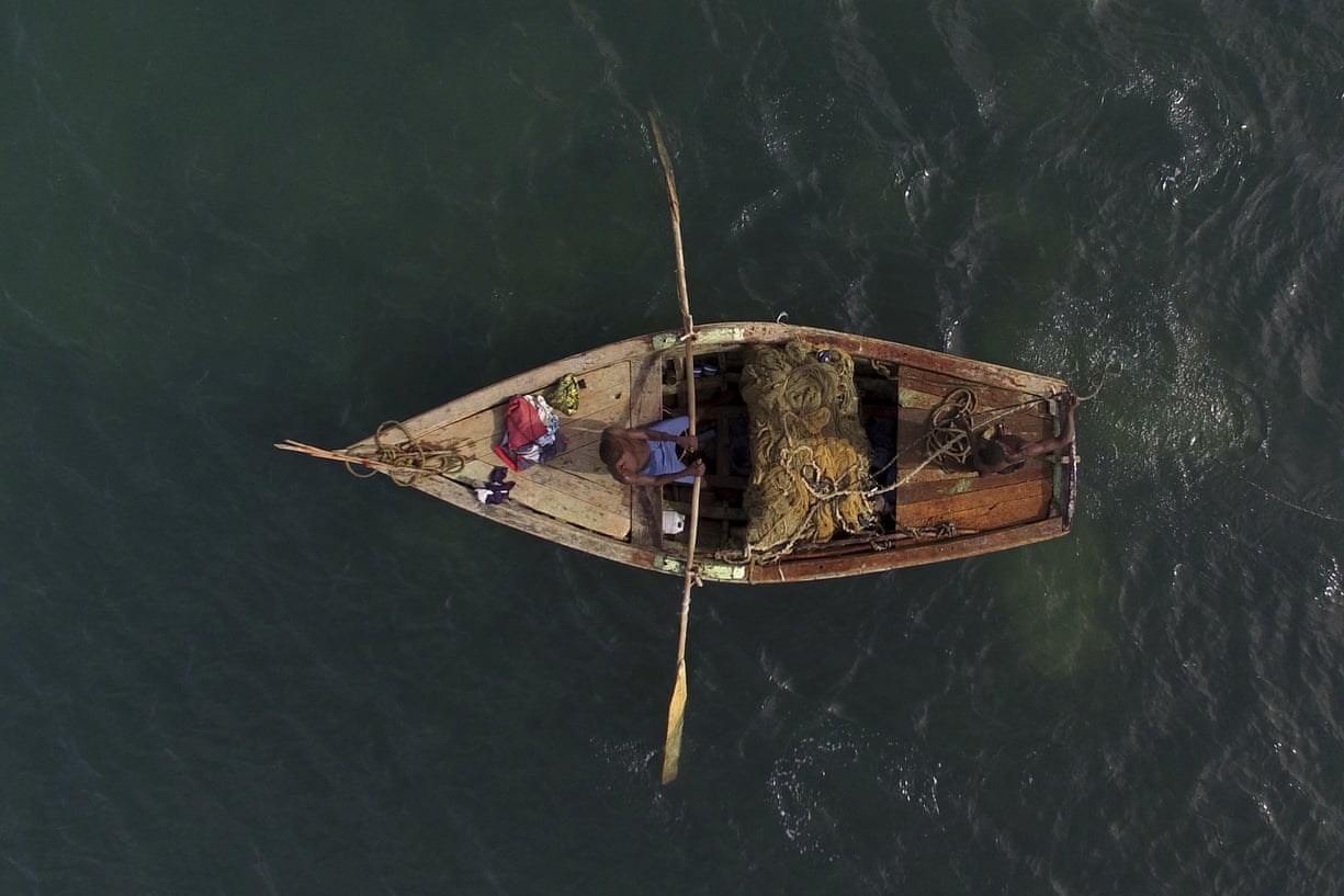 Fishermen work their nets in the bay of Port-au-Prince
