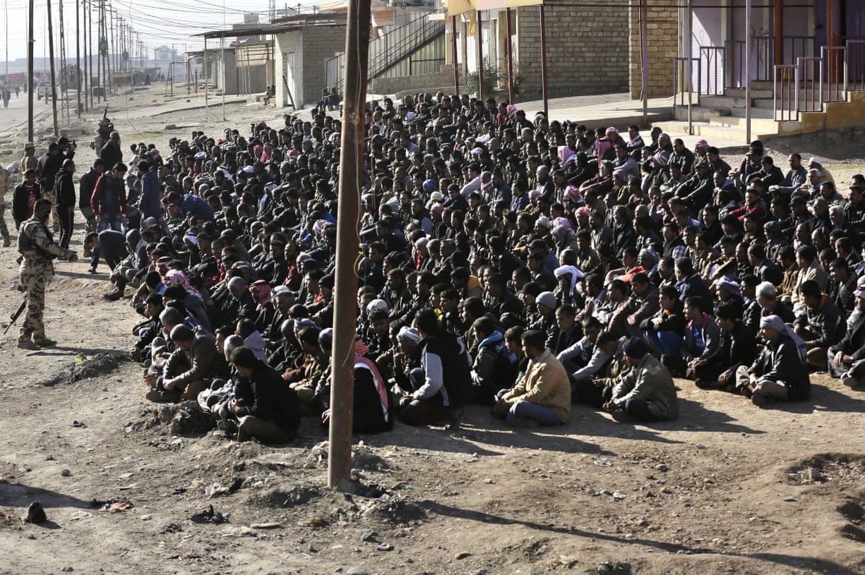 Scores of residents are rounded up by the Iraqi army to urge them to disclose information about Islamic State members