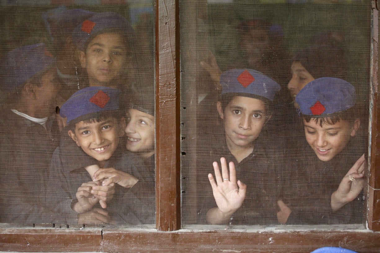 Boys attend school a day ahead of the International Student Day in Peshawar