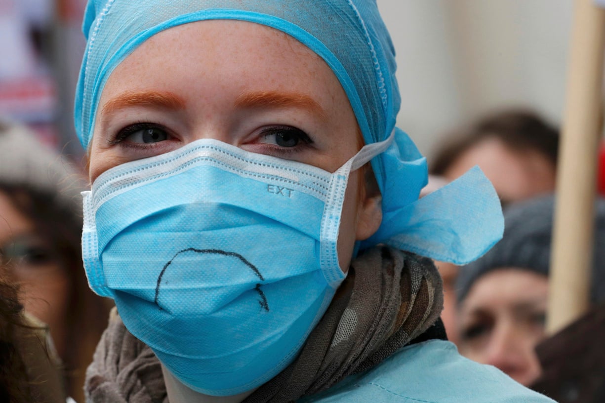 Nurses and health sector employees attend a demonstration to protest their working conditions