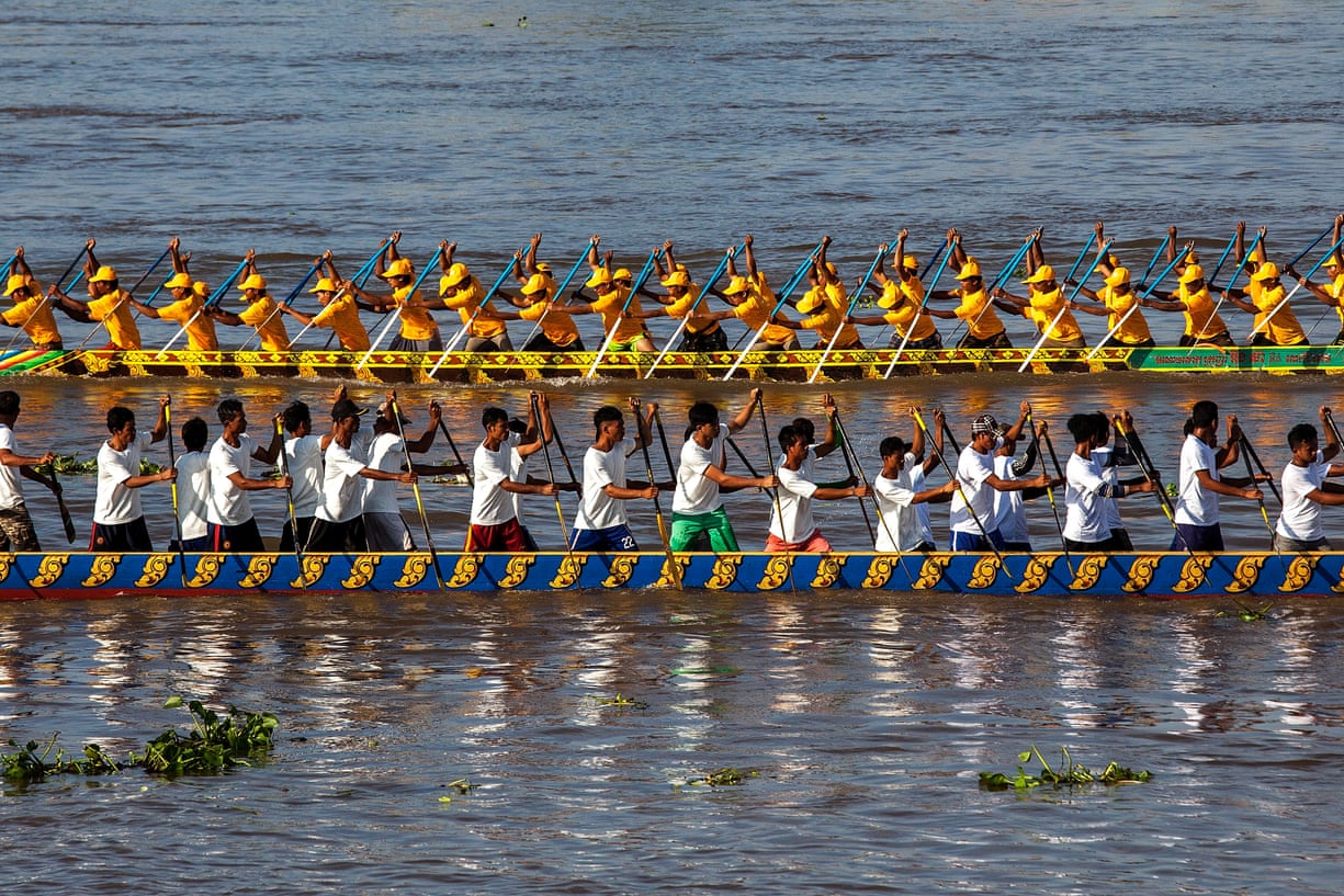 Crew members train on the waters of the Tonle Sap river on the first day of the water festival, which celebrates the end of the rainy season and the start of the rice harvest
