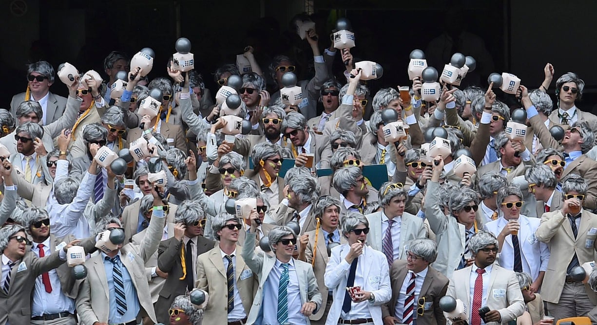 Fans dressed as the late cricketer and commentator Richie Benaud attend the Test match between Australia and Pakistan at the Gabba in Brisbane.