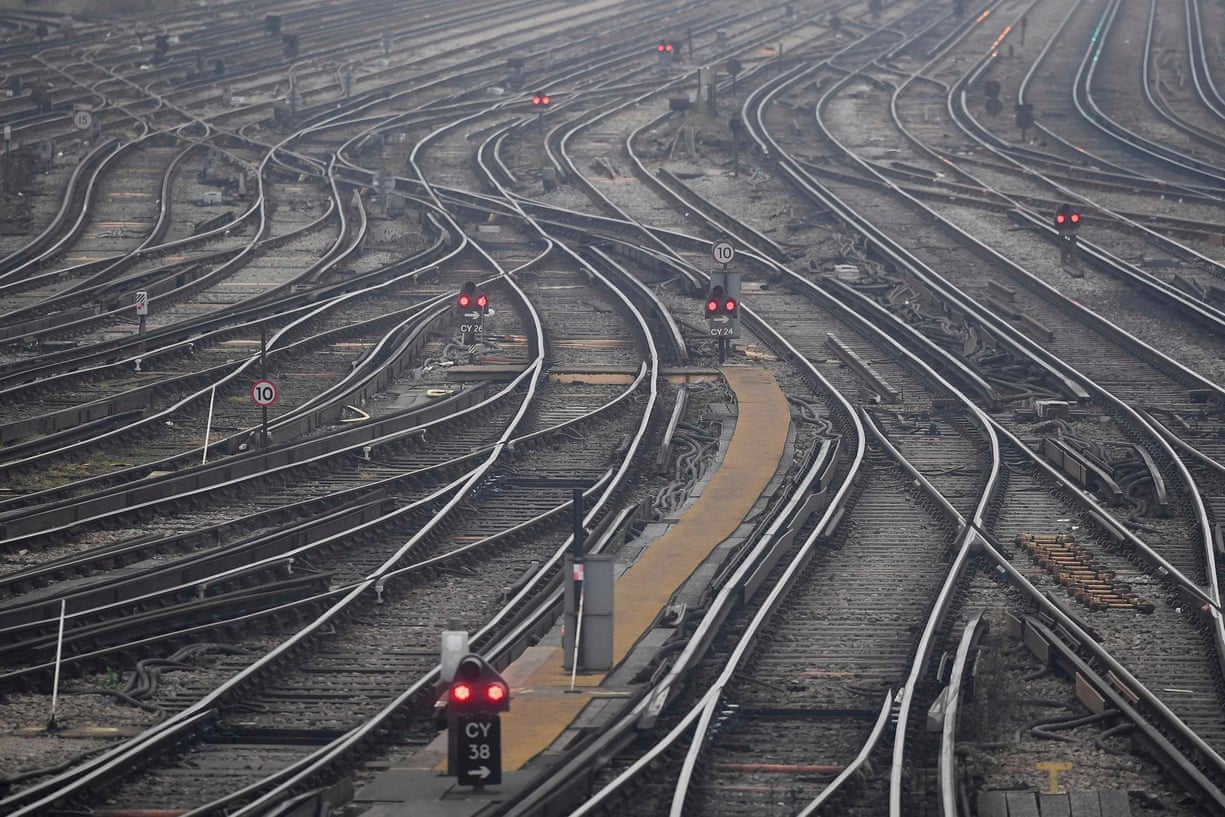 Red lights and tracks at Clapham Junction, as strikes continue on the Southern rail network.