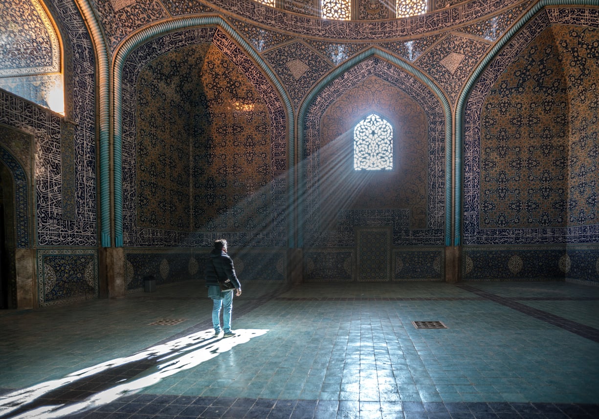 A man basks in the light streaming through a geometric window in a mosque. After reading an article about the use of specific ratios in Persian architecture, the photographer travelled across Iran to understand the mathematics behind the beauty of Islamic buildings
