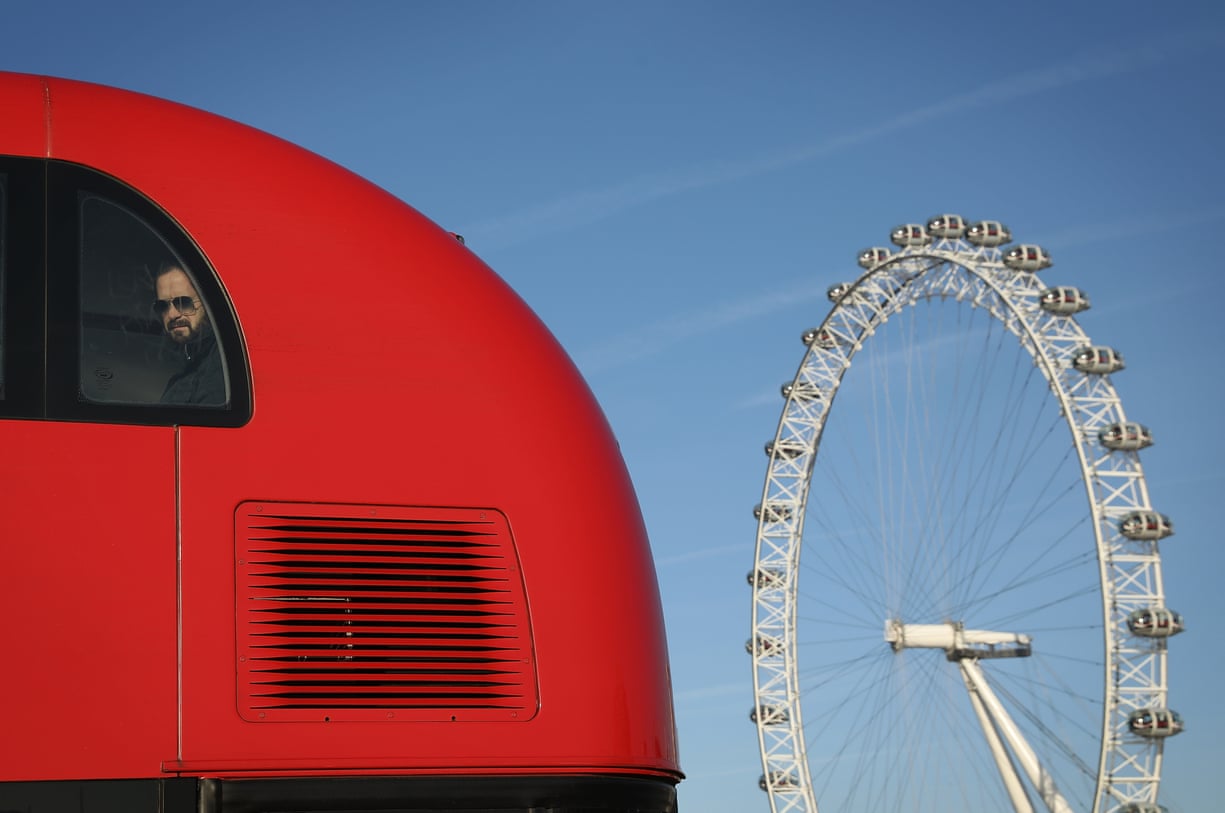 A Routemaster bus drives past the London Eye. Transport for London will discontinue purchases of the new green Routemaster buses