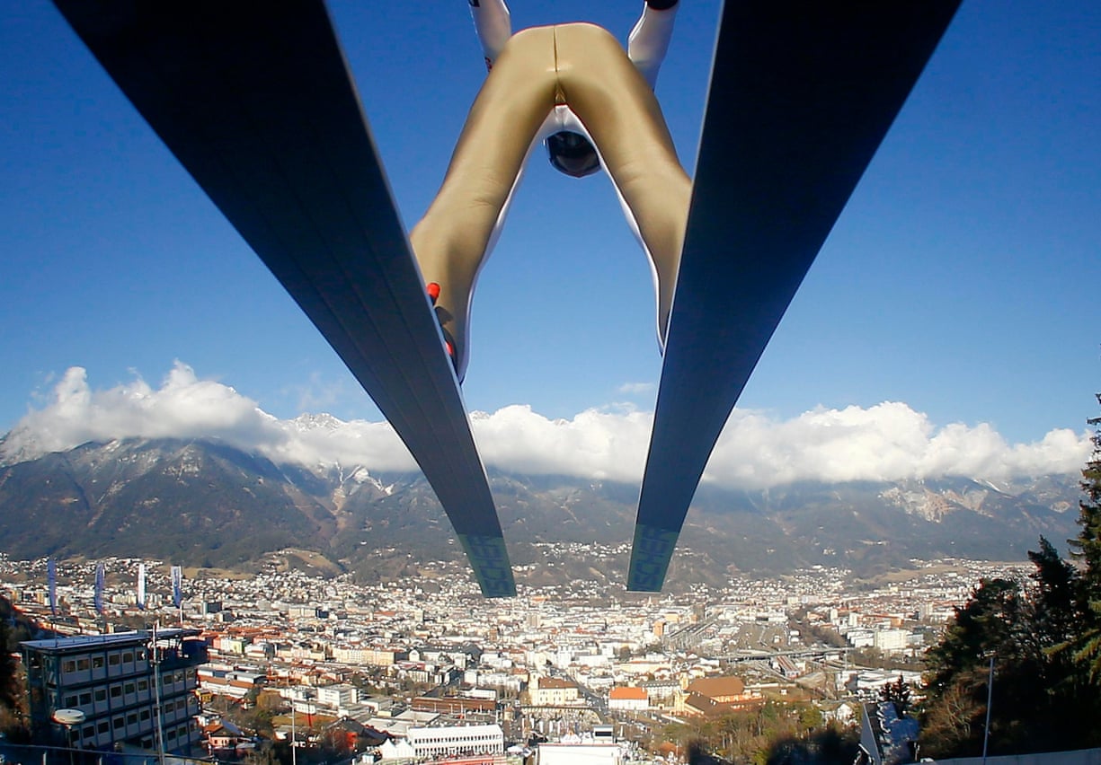 Germany’s Karl Geiger soars through the air during the trial round of the 65th four-hills ski jumping tournament in Innsbruck. Photo Dominik Ebenbichler/Reuters