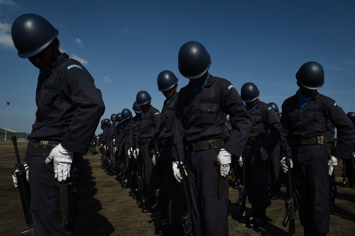 Royal Thai Air Force soldiers practice drills at Surat Thani airport