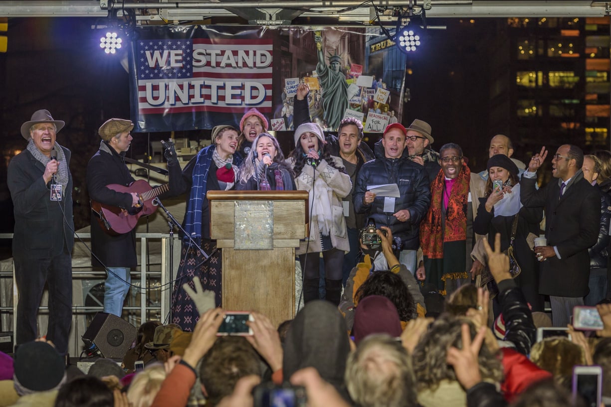 An anti-Trump rally attended by the city’s mayor Bill de Blasio, Cher, Reverend Al Sharpton, Mark Ruffalo, Michael Moore, Alec Baldwin and Julianne Moore