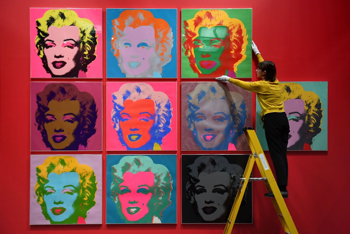 An employee poses with ten screenprints of Marilyn Monroe by Andy Warhole as part of the exhibition “American Dream: pop to the present” at the British Museum in London, Britain February 10, 2017. (Photo by Stefan Wermuth/Reuters)