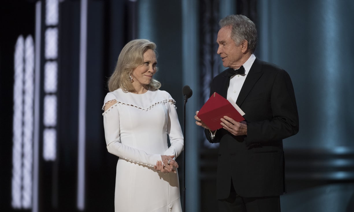 Faye Dunaway and Warren Beatty open the envelope that later turned out the be the wrong one. Photograph: Image Group LA/Getty ImagesOpinion | The Guardian