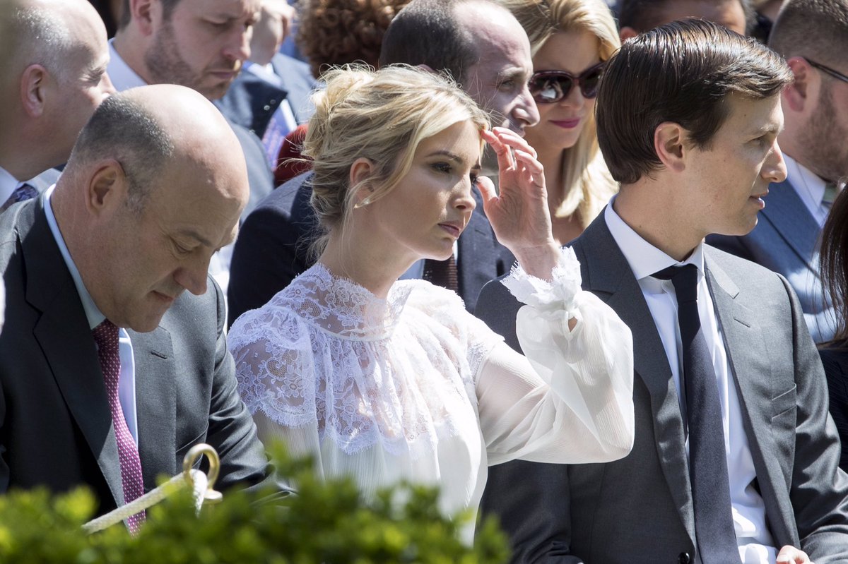 Ivanka Trump (L) holds hands with her husband, White House adviser Jared Kushner (R), as they listen as U.S. President Donald Trump and King Abdullah of Jordan hold a news conference at the White House in Washington, U.S., April 5, 2017. (Photo by Kevin Lamarque/Reuters)