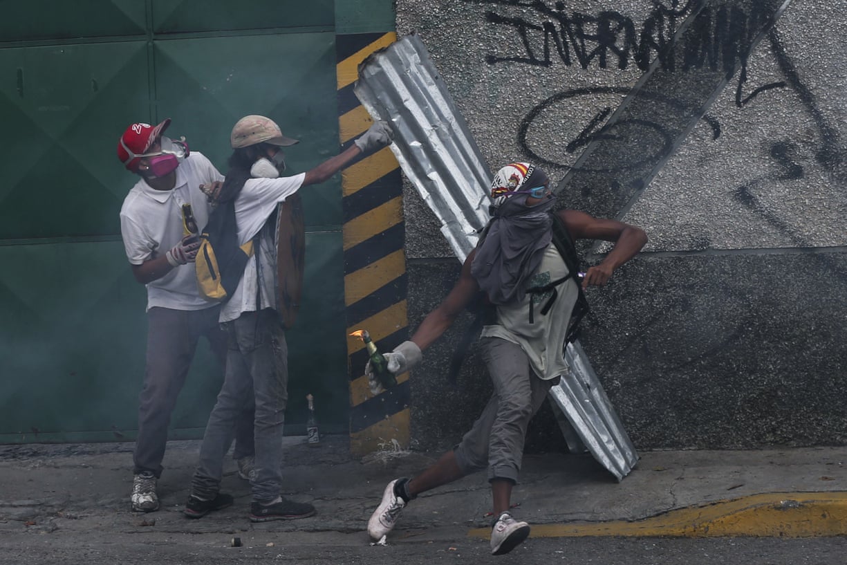 - Clashing with riot police, in Caracas, Venezuela. ...