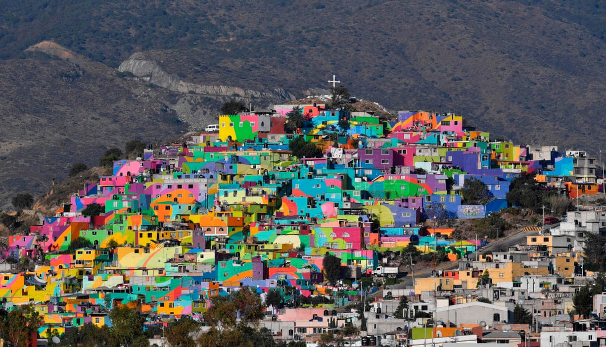 , Mexico Houses on a hill are painted with vivid colours in Hidalgo state as part of a government initiative that seeks to motivate young people living in high crime areas to participate and decorate their environment